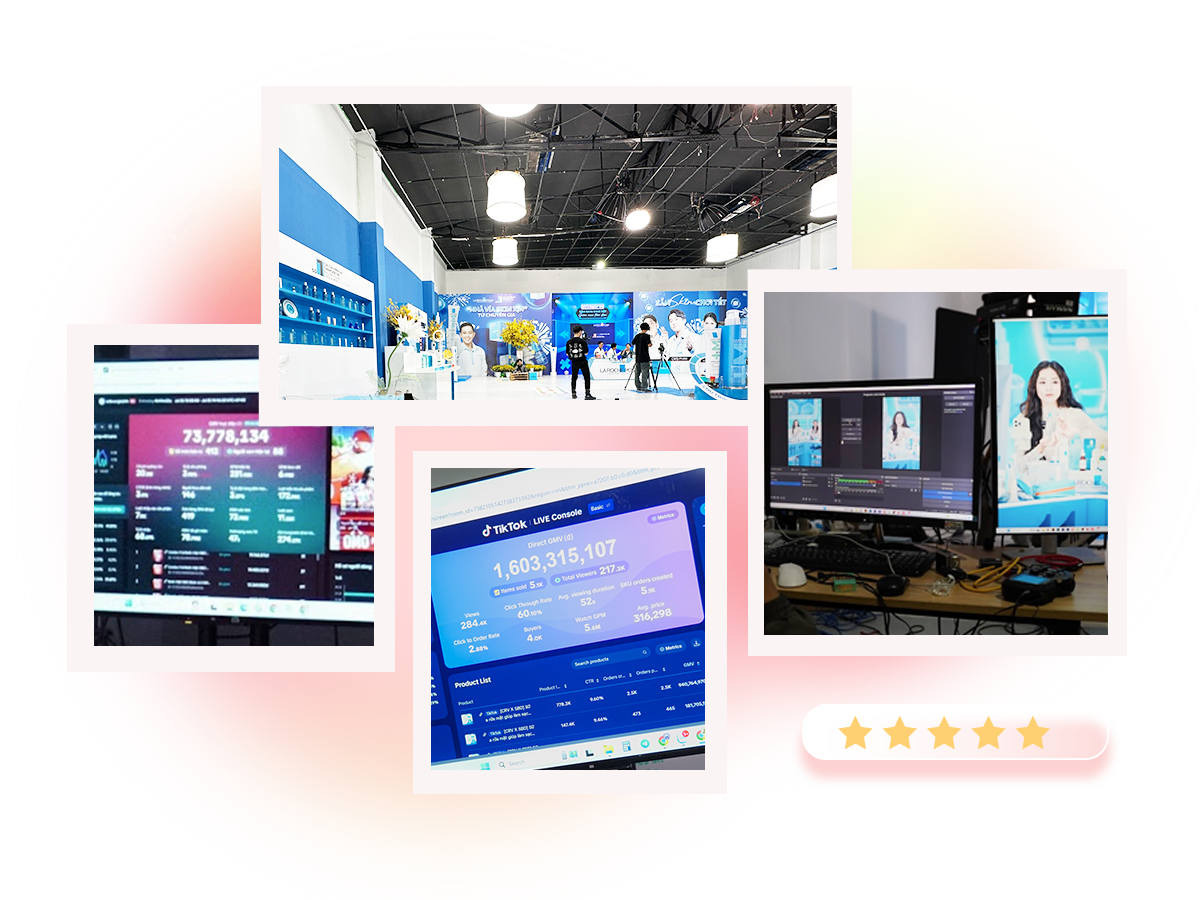 Access premium studios across Vietnam, Indonesia, and the Philippines - fully equipped with modular sets, pro lighting, and multi-camera systems. Optimized for TikTok Shop, Shopee, EcoLive Facility delivers scalable, commerce-ready productions with over 40,000 m² studio space and 13,000+ livestream hours monthly capacity.