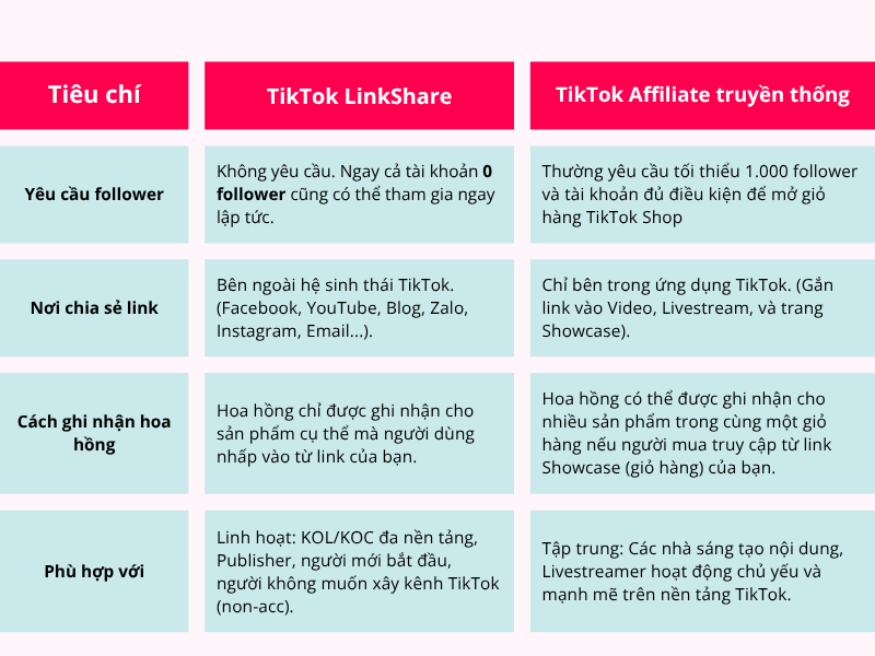 Phân biệt TikTok LinkShare và TikTok Affiliate truyền thống
